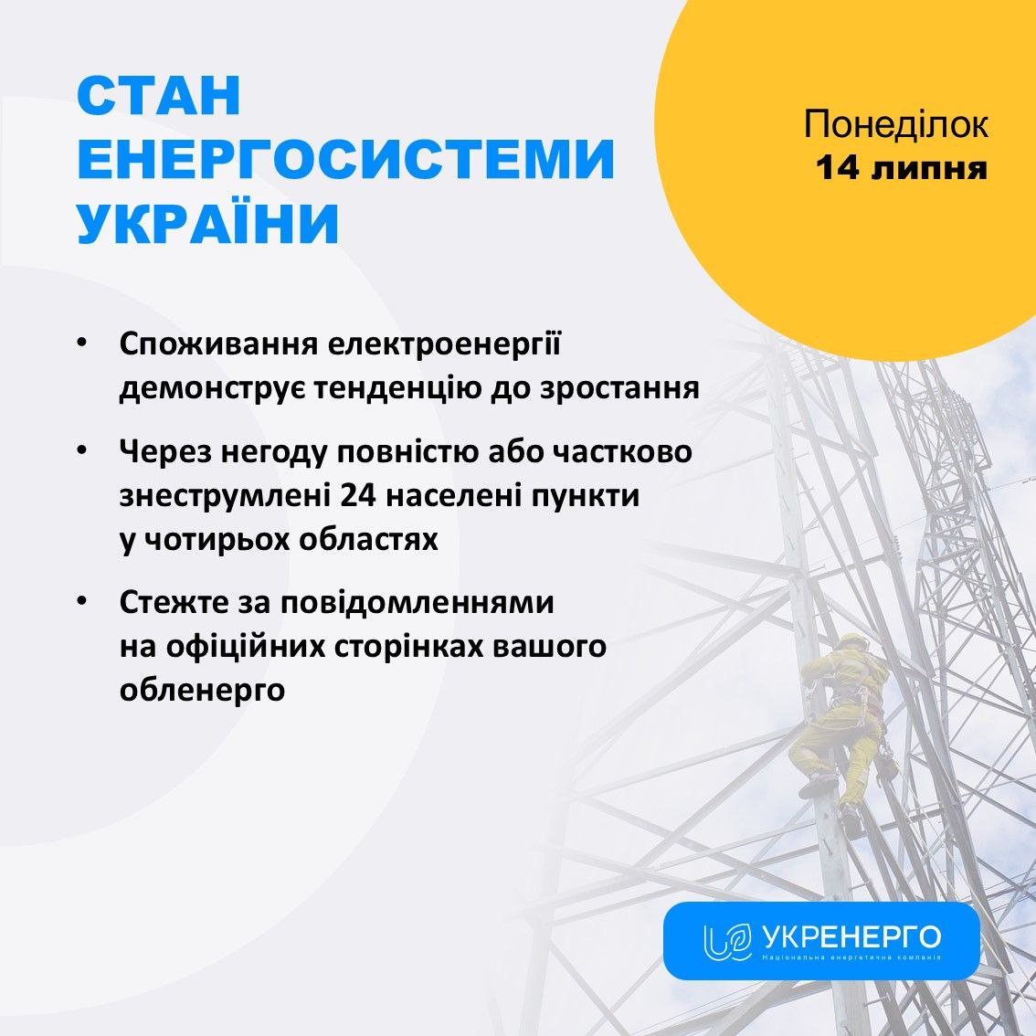 Об этом сообщает пресс-служба Укрэнерго.