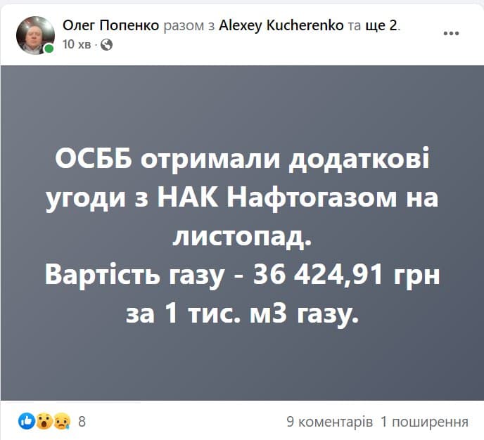 Об этом глава Союза потребителей коммунальных услуг Олег Попенко сообщает на своей странице в Facebook.