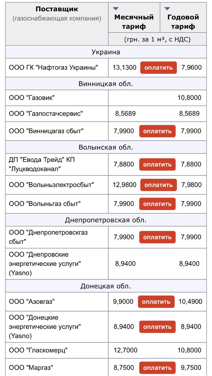 Газопоставляющая компания "Нафтогаз Украины" выставила своим клиентам цену по месячному тарифу в 13,13 грн / куб.м (с НДС без стоимости доставки), что примерно на 50% дороже годового тарифного плана в 7,96 грн / куб.м. Дороже всего по месячному тарифу газ обойдется в Черкасской, Хмельницкой, Херсонской, Полтавской, Одесской, Житомирской областях, а также в газоснабжающей компании в Киевской области "ТАС Энергия" - 15,5 грн / куб.