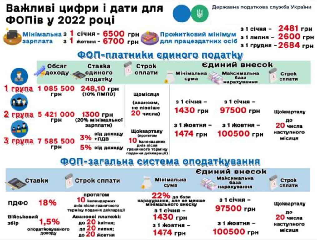 Единый налог – 1300,0 гривен – 20% от минимальной заработной платы, установленной Законом на 1 января 2022 года.