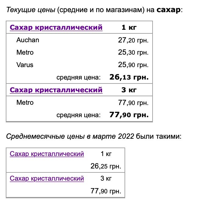 Килограмм сахара остался на уровне 26,13 грн. В Metro можно приобрести за 25,30 грн/кг, а для тех, кто берет упаковки сразу по 3 килограмма, есть приятная новость - ценник не изменился вовсе и остался на уровне 77,90 грн.