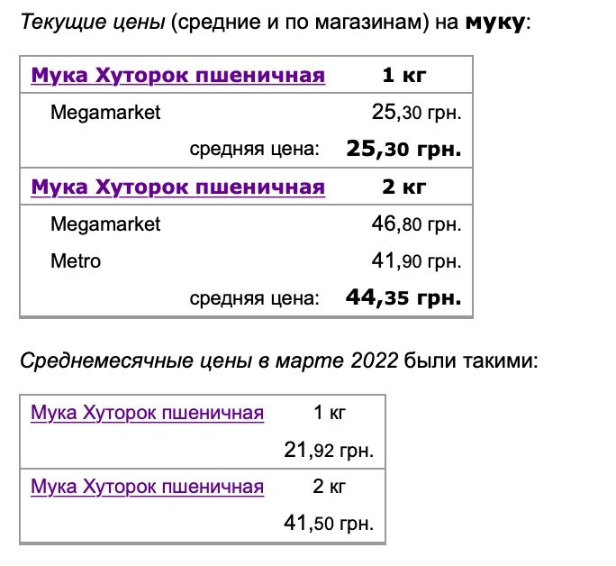 Средняя стоимость муки "Хуторок" – 25,30 грн/кг. Наблюдается подорожание на двухкилограммовую пачку муки – 44,35 грн (средняя цена в марте составляла 41,50 грн).