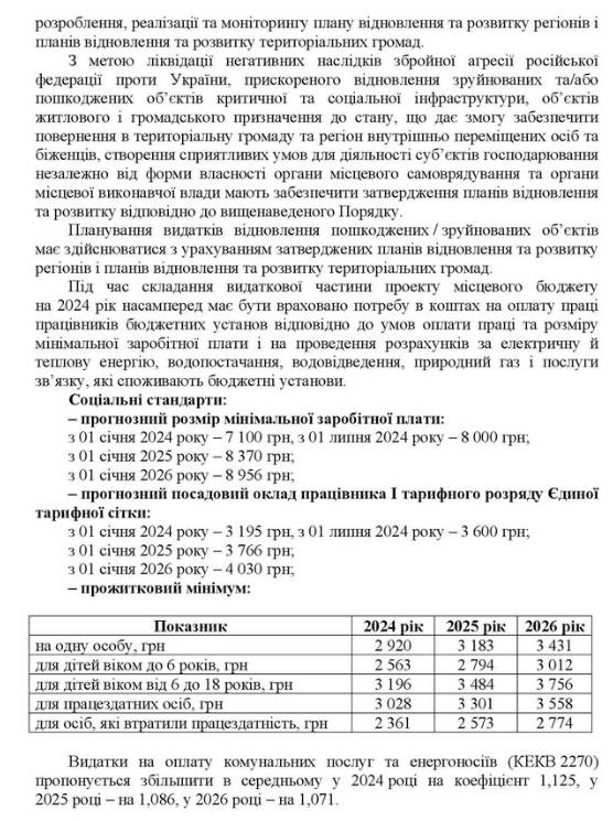 Кроме того, Минфин привел прогнозируемые показатели прожиточного минимума - для трудоспособных лиц предлагают установить на уровне 3028 грн на весь 2024 год.