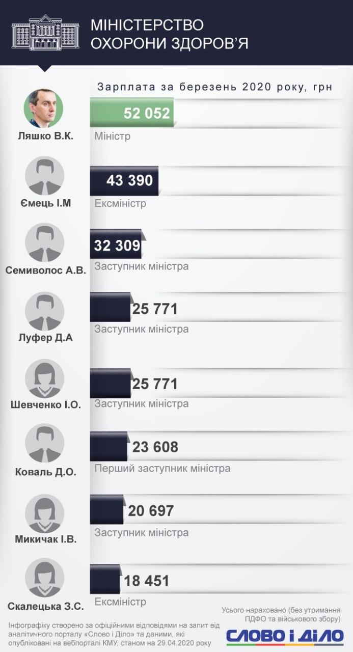 Меньше всех получила эксминистр здравоохранения Звездная Скалецкая - 18,5 тыс. грн.