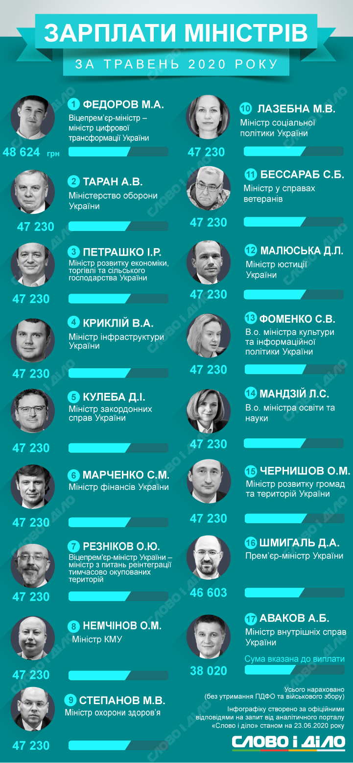 О том, сколько получили министры за май, сообщает "Апостроф" со ссылкой на "Слово и дело".