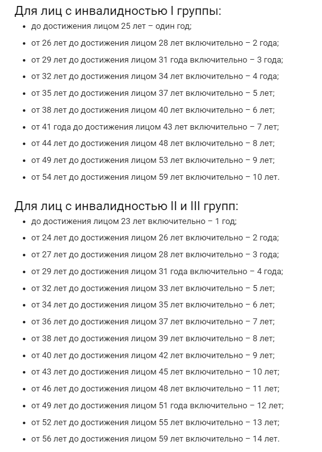 Для лиц с инвалидностью I и ІІ группы существуют определенные условия по количеству стажа.