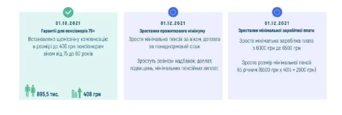 - пенсионерам в возрасте от 65 лет со стажем 35 лет для мужчин и 30 лет для женщин, минимальная пенсия вырастет до 2600 грн в связи с ростом минимальной зарплаты (с 6 тысяч до 6,5 тысяч гривен)