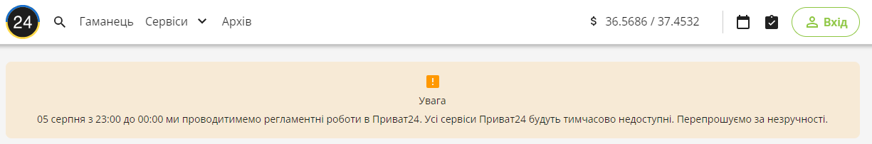 В субботу, 5 августа, онлайн-сервис Приват24 одного из крупнейших украинских государственных финансовых учреждений ПриватБанк некоторое время не будет работать.