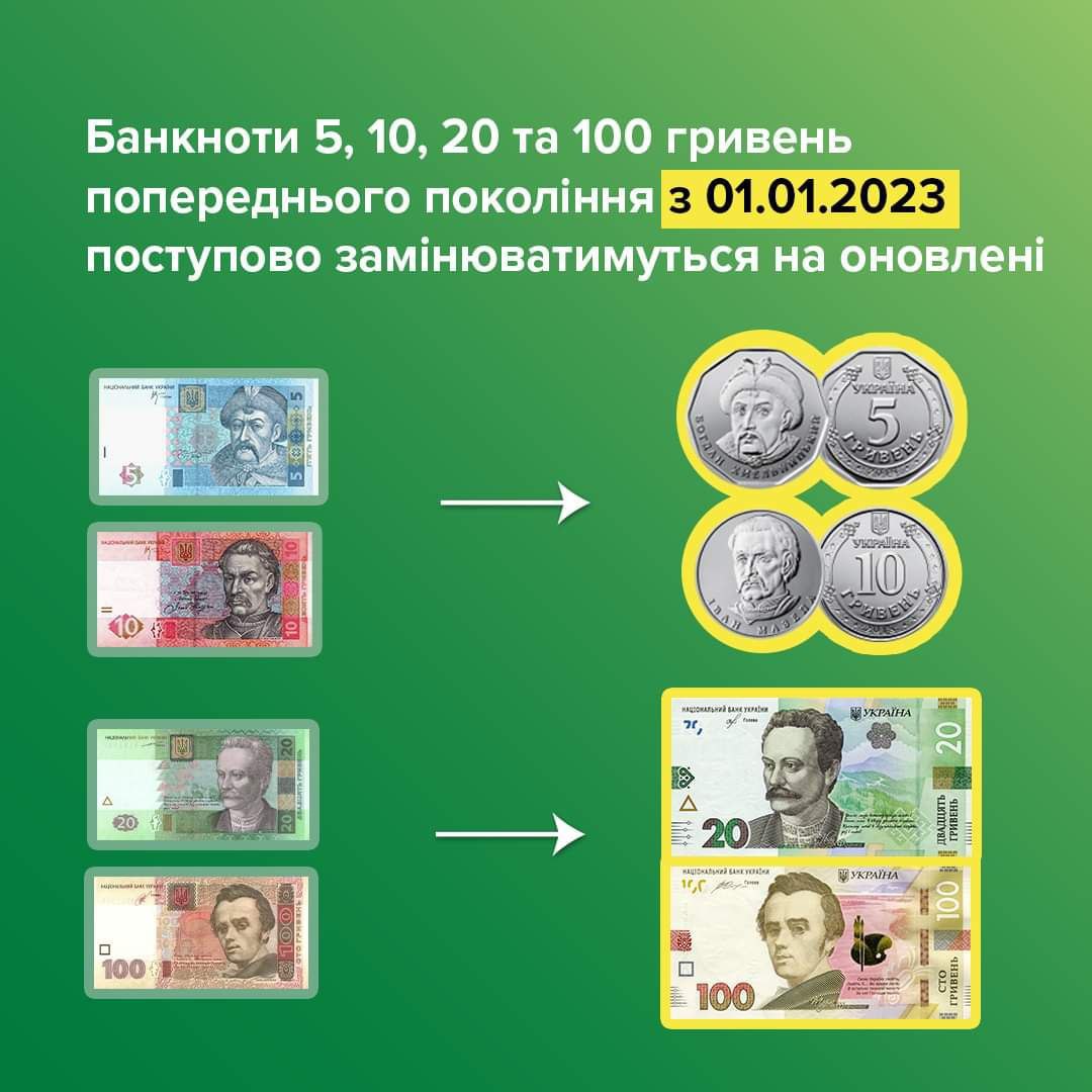 С 1 января 2023 года в Украине произошло немало изменений. В частности, Национальный банк начал изымать бумажные банкноты номиналами 5, 10, 20 и 100 гривен образцов 2003-2007 годов. Их заменять монетами номиналами 5 и 10 грн образца 2018 года и банкнотами номиналами 20 и 100 грн нового поколения.
