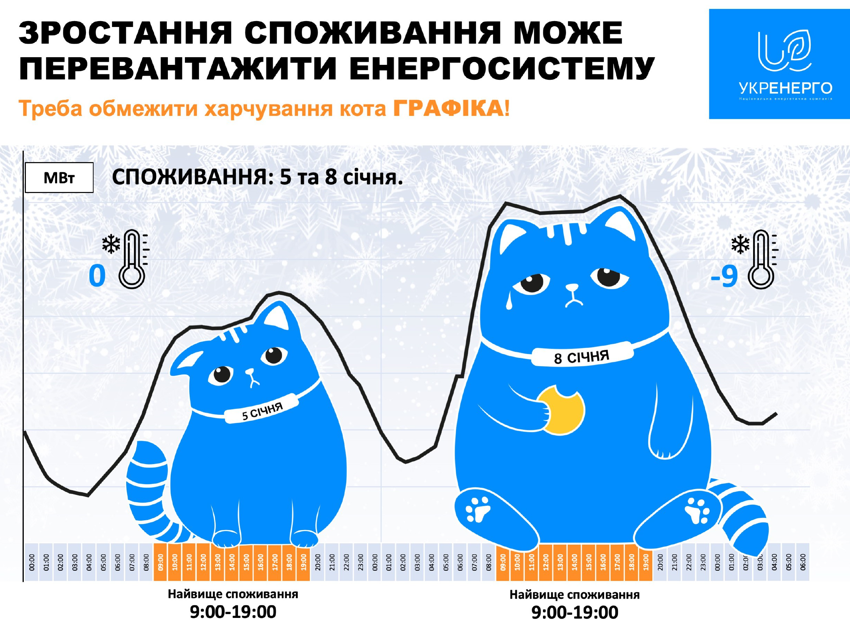"Нужно помочь коту Графику сохранить здоровье - ограничить его питание. Пожалуйста, потребляйте электроэнергию бережливо", - говорится в сообщении.