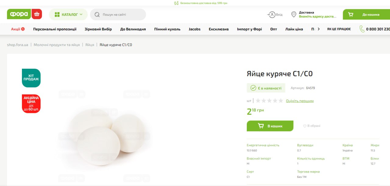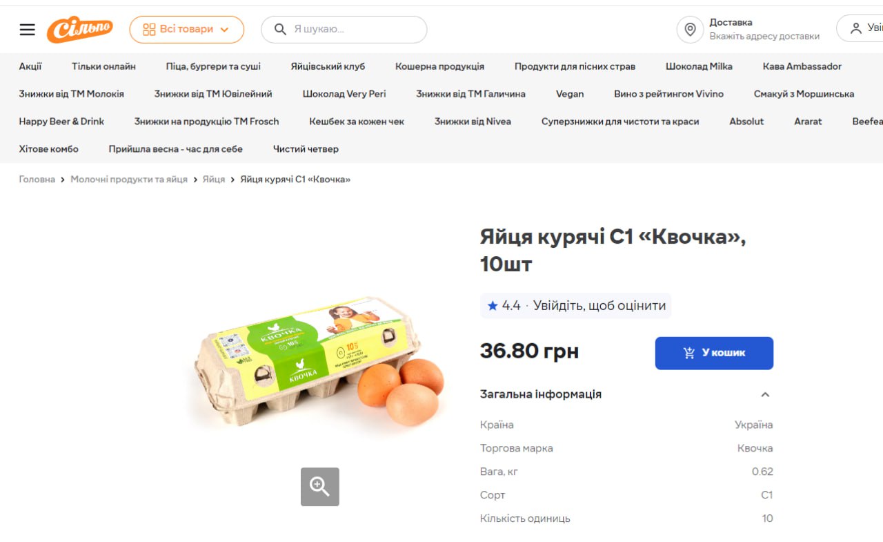 Следует отметить, что согласно данным, еще в июне средняя цена на десяток яиц составила 41,54 грн. При этом по состоянию на 30 апреля в таких сетях магазинов, как "Фора", "АТБ", "Эко-маркет", можно купить этот продукт по акционной цене – от 21,60 грн за 10 яиц.