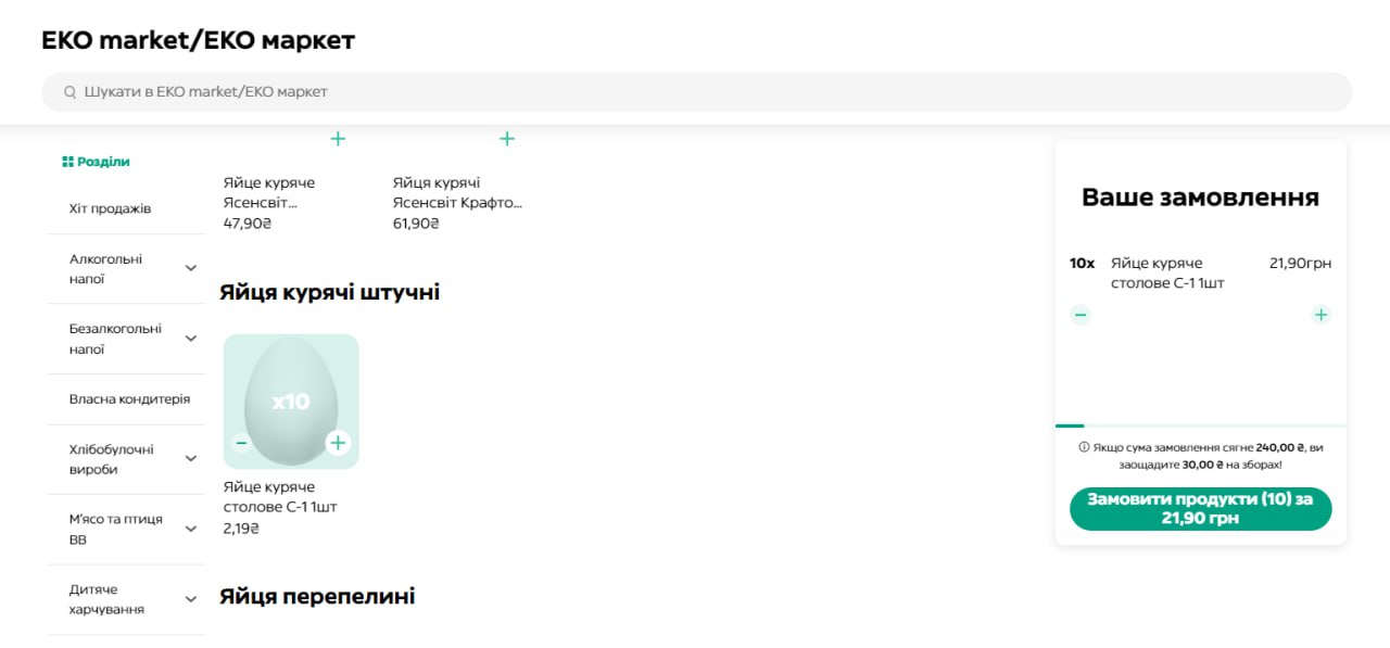 В целом, в супермаркетах можно купить яйца за 32, 37, 42, 52, 54 или даже 65 гривен за десяток. В то же время, 20 штук перепелиных яиц стоит 56 гривен.
