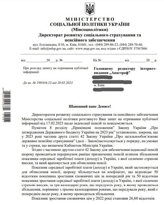 Об этом говорится в ответе Министерства социальной политики на официальный запрос издания "Апостроф" о доступе к публичной информации.