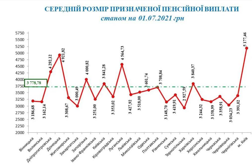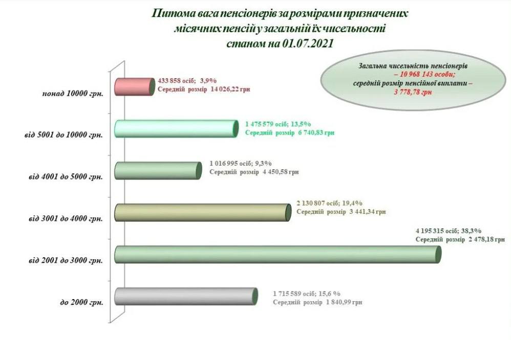 Пенсионный фонд обнародовал данные по состоянию на 1 июля 2021 года, согласно которым средний размер пенсии составляет 3778 грн, а почти 4% всех пенсионеров получают больше 10 тысяч гривен выплат.