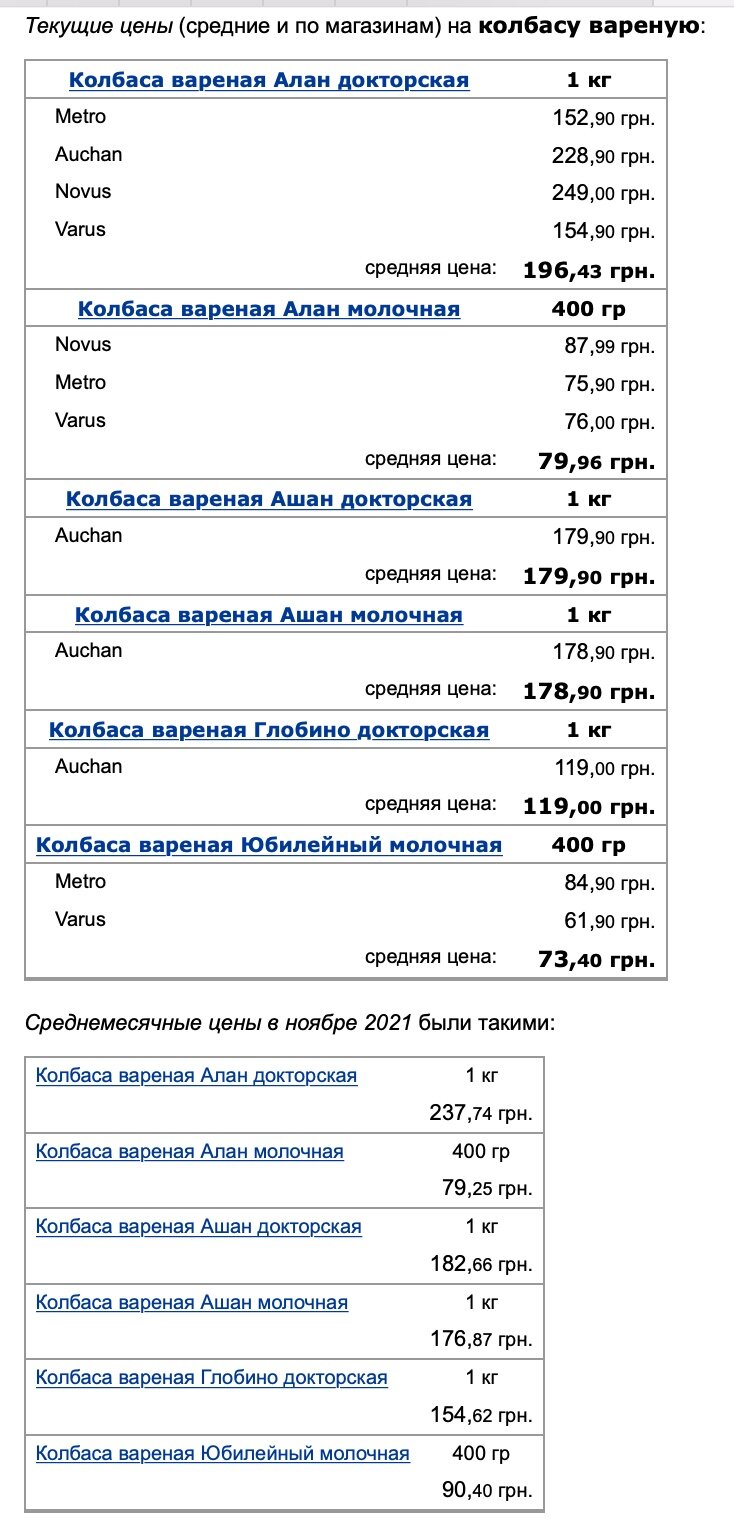 Так, в ноябре варено-копченая колбаса "Глобино салями" стоила 151,74 грн за кг, а в декабре – 143,95 грн. Таким образом, цена снизилась на 5,13%. Подешевели также колбасы "Алан докторская" (на 17,37%) и "Ашан докторская (на 3,2%). Существенно упали в цене "Глобино докторская" (на 23%) и "Юбилейный молочная" (на 18,8%).