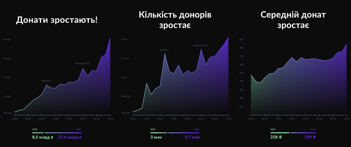 Также увеличился и средний донат. В этом году его размер составил 349 грн. против прошлогодних 258 грн.
