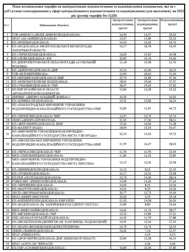 - 47,56 грн/м³ – 25,73 грн/м³ и 21,83 грн/м³ - Бердянск.