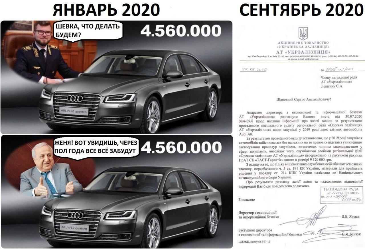 В госкомпании "Укрзализныця" очередной скандал. Оказалось, что деньги, предназначавшиеся на ремонт дизель-поезда, были потрачены на покупку двух лимузинов Audi А8 Long.