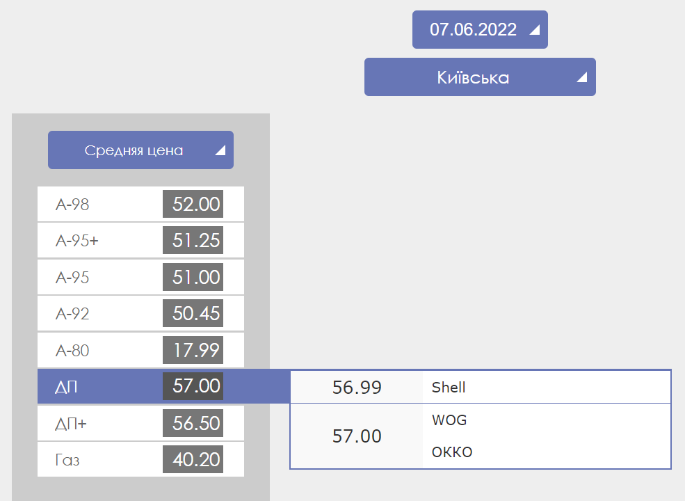 Стоимость бензина А-95 в Киевской области колеблется от 50 до 52 грн, дизельное топливо стоит 57 грн, а автогаз - от 39,39 до 42 грн.