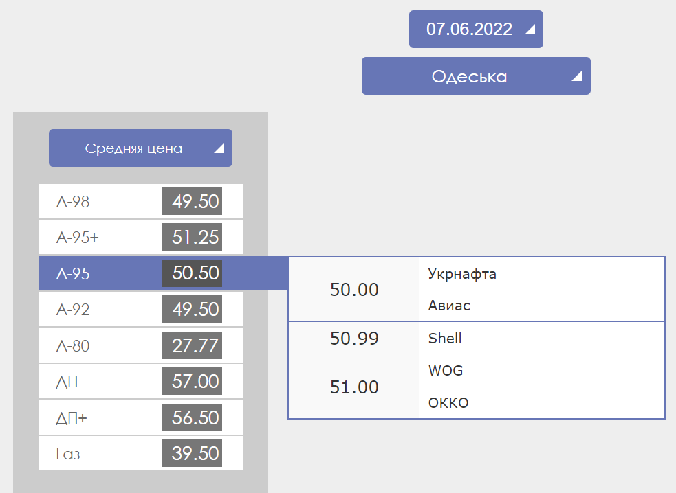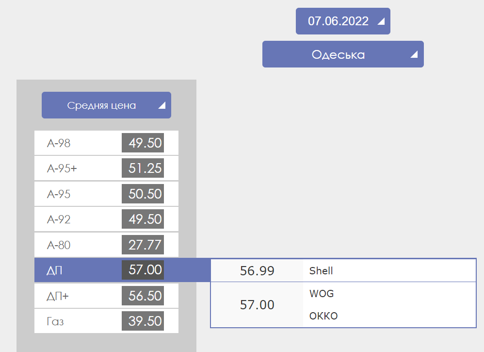 В Одесской области бензин А-95 стоит в пределах 50-51 грн, дизельное топливо реализуют по цене 57 грн, а цена автогаза - от 37 до 42 грн.
