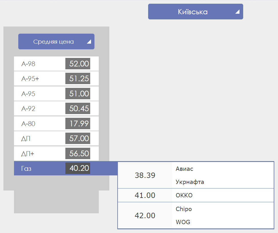 Стоит отметить, что самые популярные виды топлива - бензин А-95, дизельное топливо и автогаз есть на заправках во многих областях Украины, однако цена может отличатся в пределах гривны-двух.