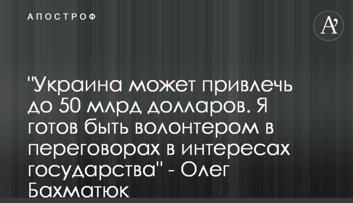 Также он отметил, что такие же возможности для Украины могут предоставить и рынки Ближнего Востока, в частности Саудовской Аравии, где также возможно проводить переговоры по привлечению финансов под поставки продовольствия из Украины. Бахматюк заявил, что готов работать волонтером на государство в таких переговорах.