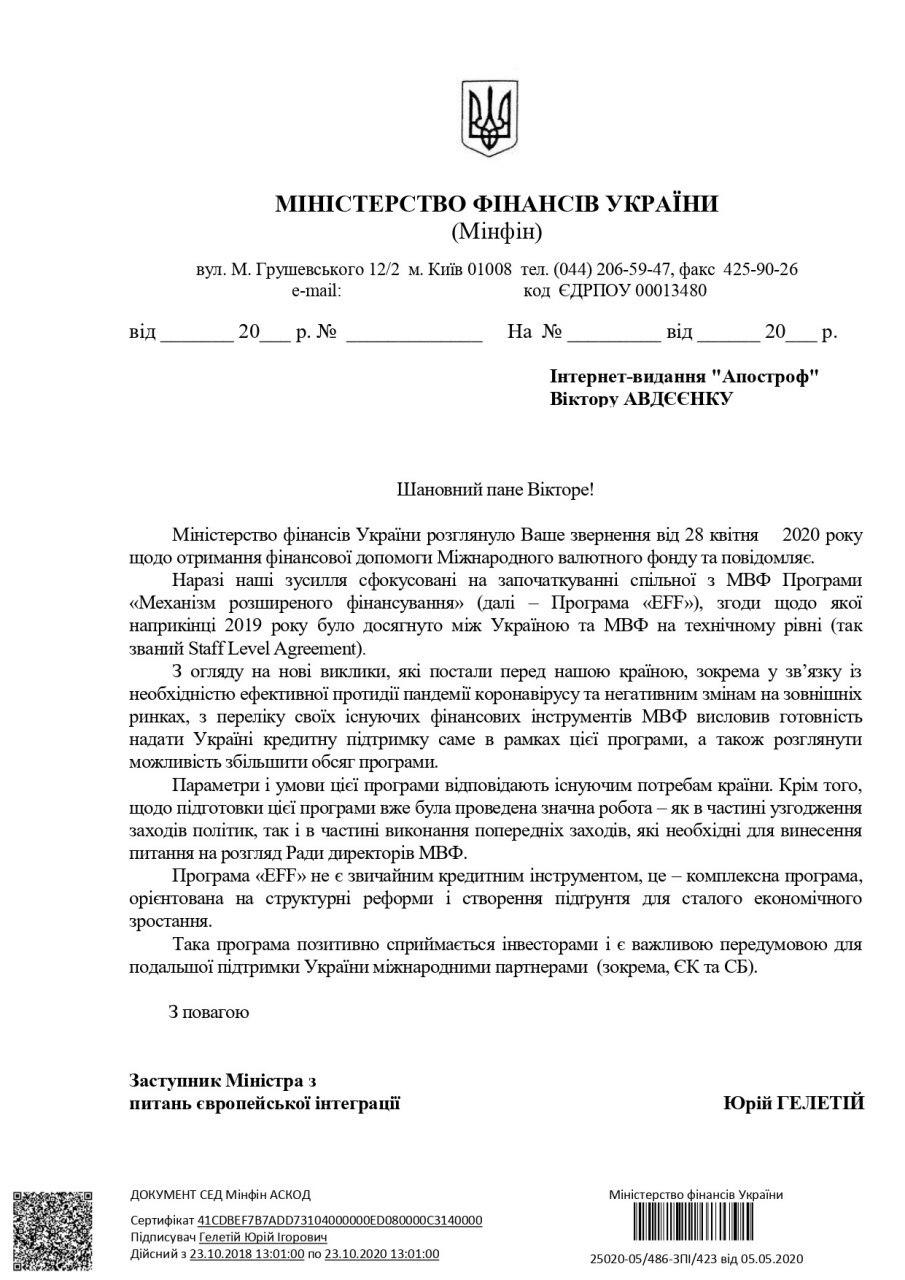 Это следует из ответа Министерства финансов Украины на запрос "Апострофа".
