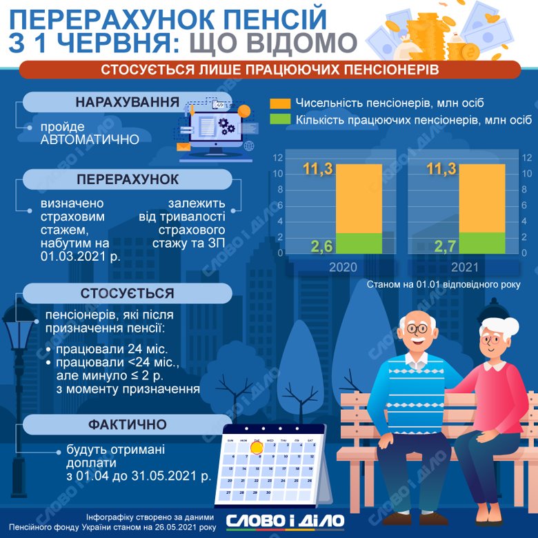 С 1 июня в Украине произведут перерасчет пенсий работающим пенсионерам, он будет сделан автоматически без обращения пожилых людей в Пенсионный фонд.