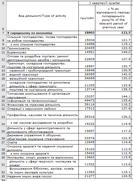 Как сообщает ведомство, в первом квартале зарплата в среднем по экономике страны составляла 18,9 тысячи гривен. То есть равняется 122,5% показателя прошлого года.