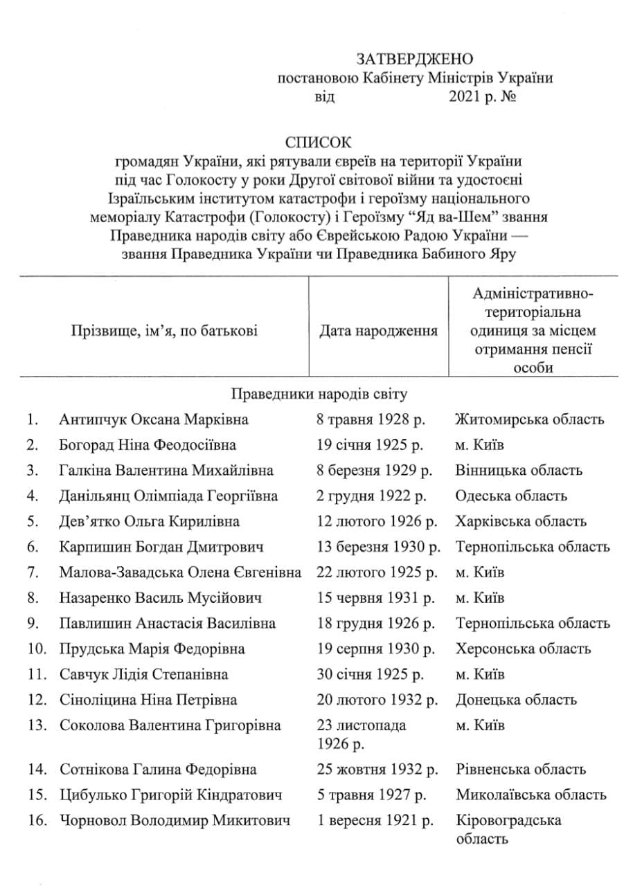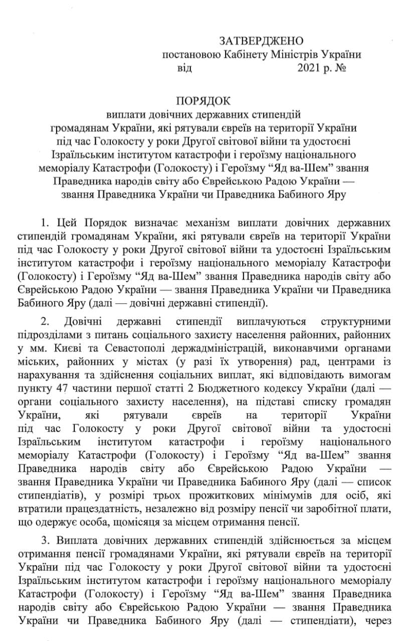 В среду, 8 сентября, украинское правительство приняло решение о назначении пожизненных государственных стипендий гражданам Украины, которые спасали евреев во время Холокоста в годы Второй мировой войны.