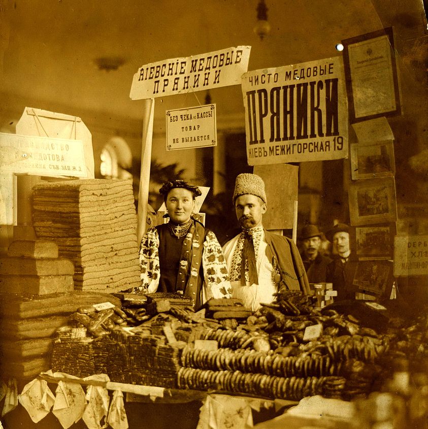 Фото, которое показали в социальных сетях, создает ощущение кадра из кинофильма, что успели поймать профессиональные фотографы. Однако именно так происходила торговля на ярмарке в 1910-х годах. Местные жители надели свои лучшие вышиванки, дополнив другими традиционными элементами украинского костюма, и вышли продавать медовые пряники без сахара на Подоле.