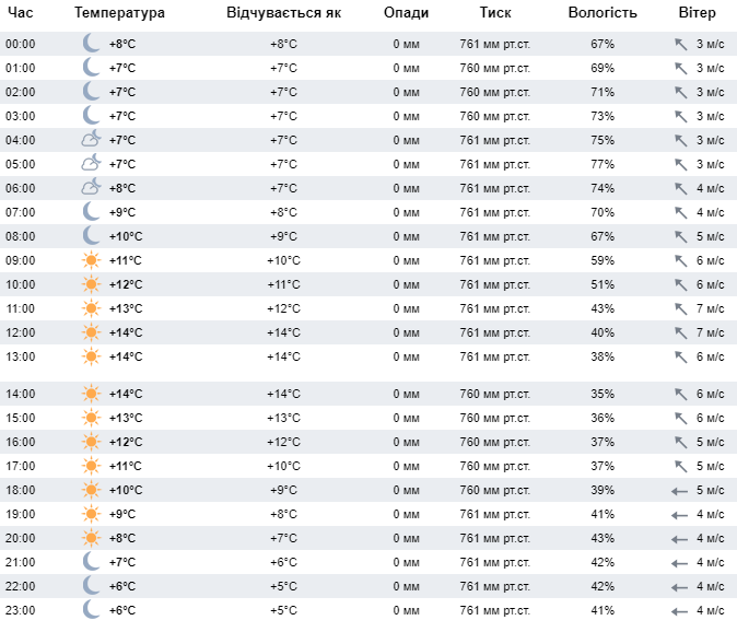 Судя по данным метеостанций, с самого утра в столице небо будет безоблачным. С 9:00 до полудня средняя температура воздуха поднимется до 14 градусов тепла.