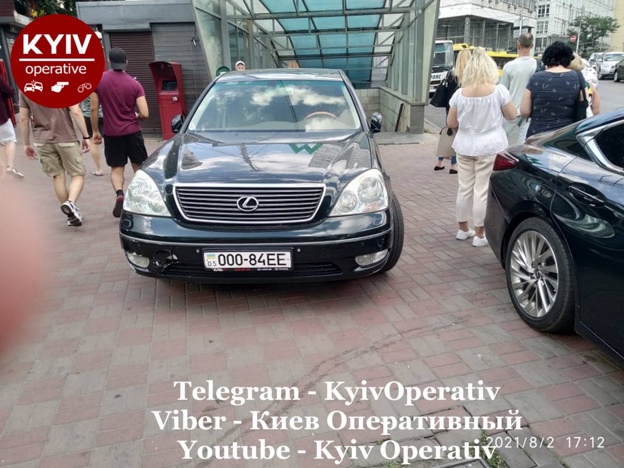 Водитель Lexus припарковался на входе в подземный переход станции метро "Дворец Спорта". Киевляне и гости города вынуждены протискиваться между ним и еще одним горе-парковщиком, который оставил свой автомобиль немного дальше.