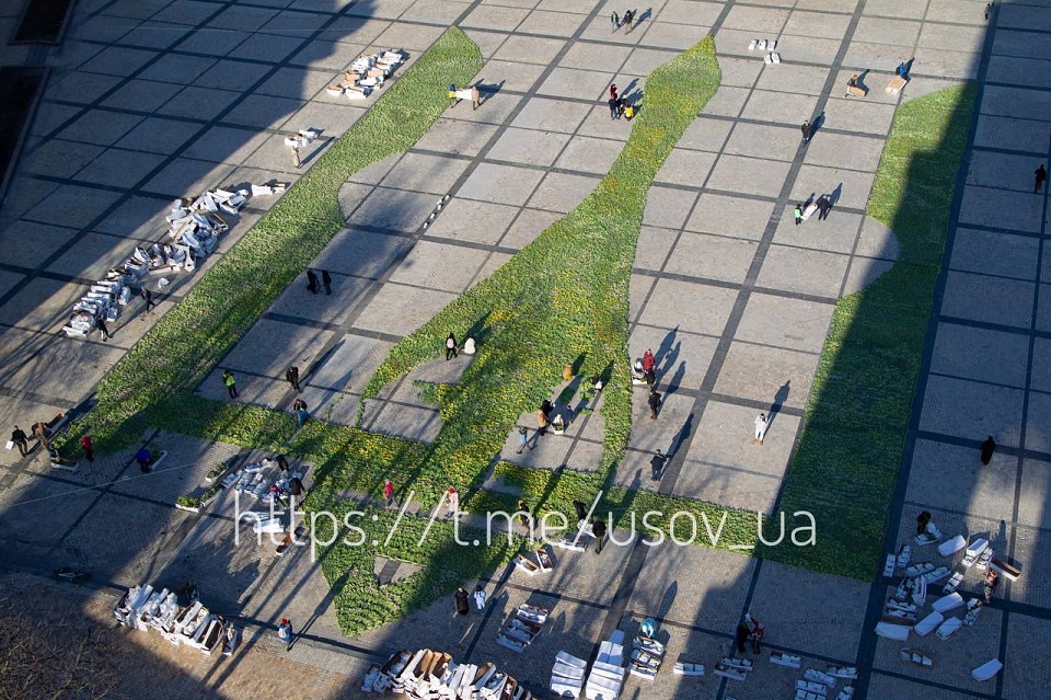 На Софиевской площади в Киеве выложили гигантский герб Украины из 1,5 миллиона живых цветов в честь приближающих победу украинок.