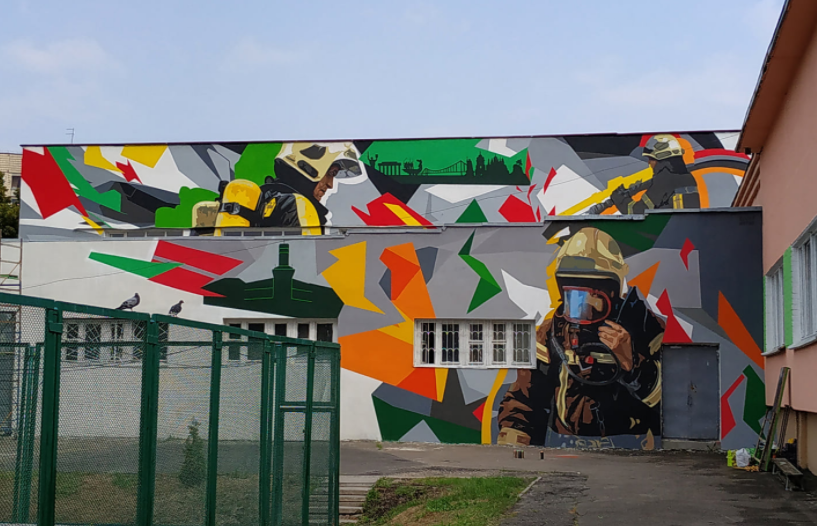 Мурал нарисовали ко Дню спасателя, который отмечается 17 сентября. Над ним работали художники Виталий Гидеван и Нойна.
