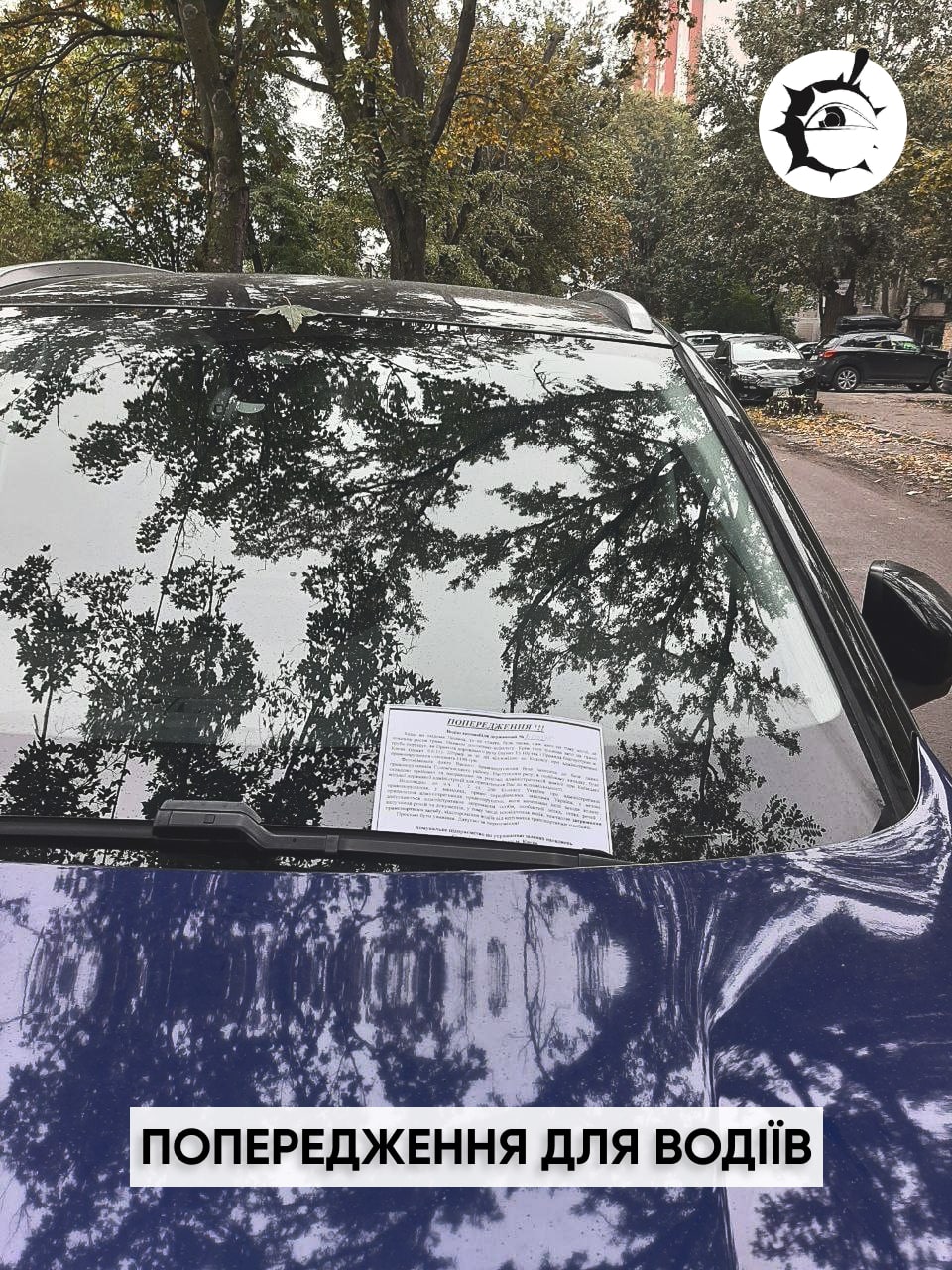 В столице в парке "Орленок" вблизи улицы Василенко в Соломенском районе неизвестный водитель решил припарковаться на зеленой зоне. Такую наглость не смогли обойти вниманием работники "Зеленстроя" - они написали водителю предупреждение и прикрепили его к лобовому стеклу.
