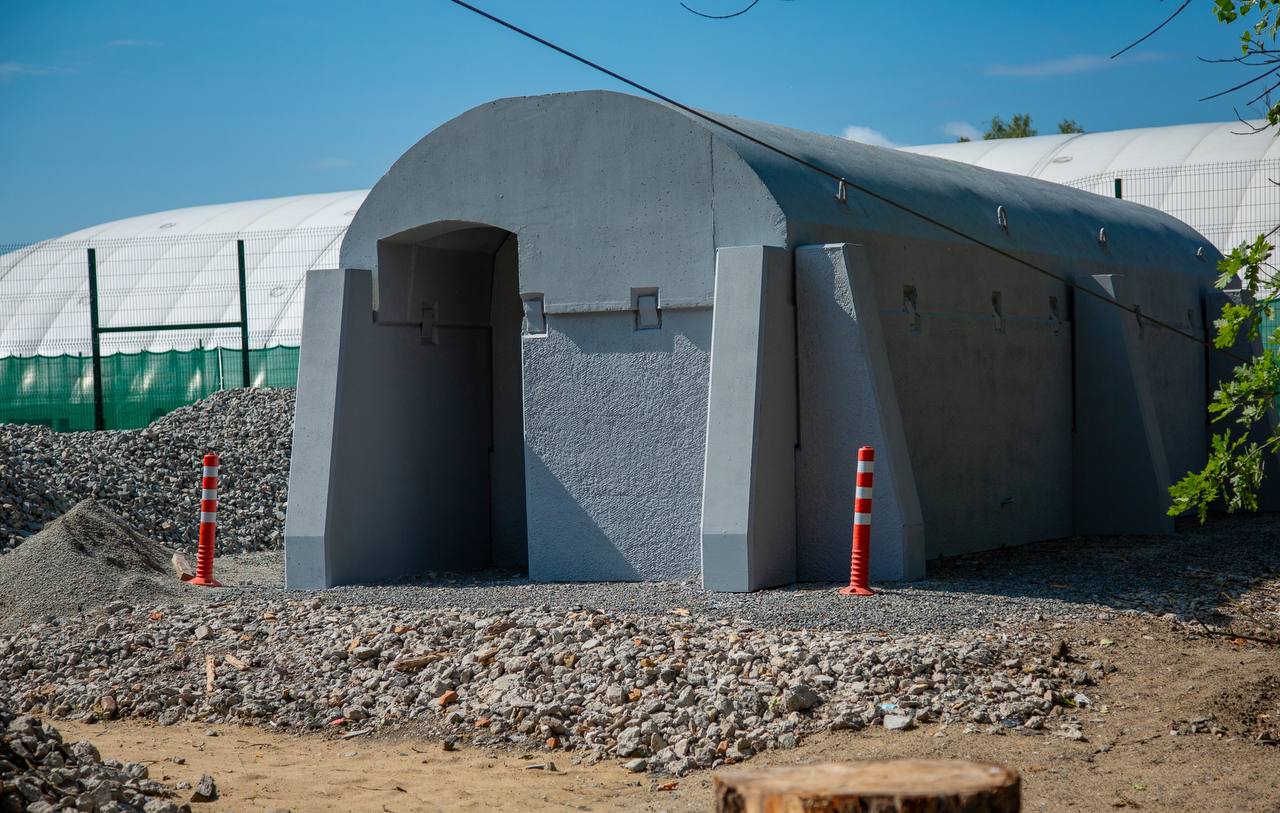 "Пилотная" конструкция изготовлена из высококачественного бетона. Она может оградить от взрывной волны и осколочного поражения. Один такой модуль вмещает до 20 человек.