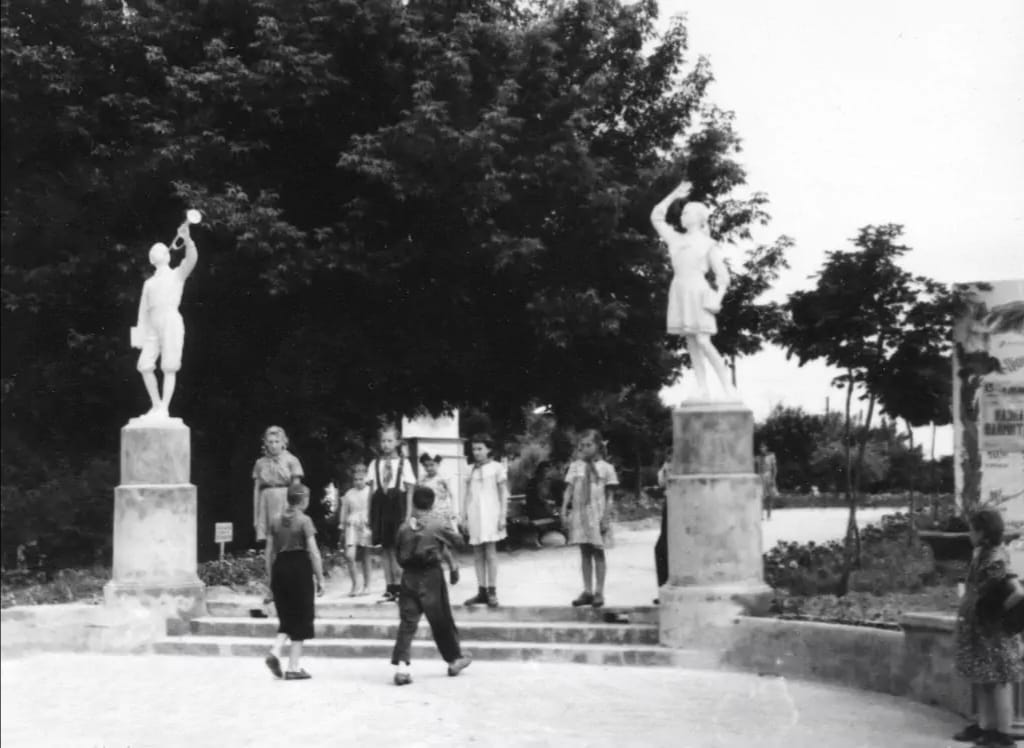 50 лет назад в Киеве на месте типичных советских скульптурных построек стоял милый фонтан "Слон". Когда большевикам удалось захватить украинскую столицу - они решили превратить Купеческий сад в Пионерский парк, где нужно было заменить одни символы на другие.