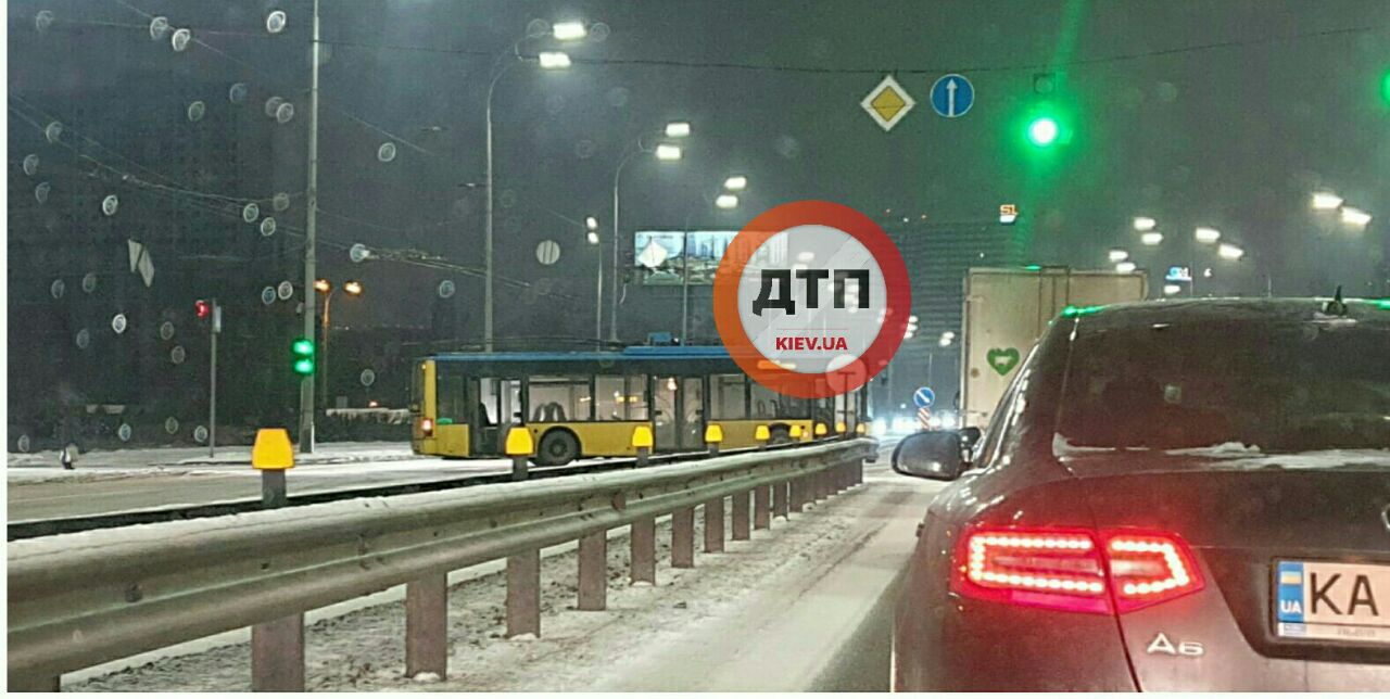 В понедельник, 24 января, на Теремках в Киеве троллейбус перекрыл движение на оживленном перекрестке. Из-за ЧП остановились 9 маршрутов общественного транспорта.
