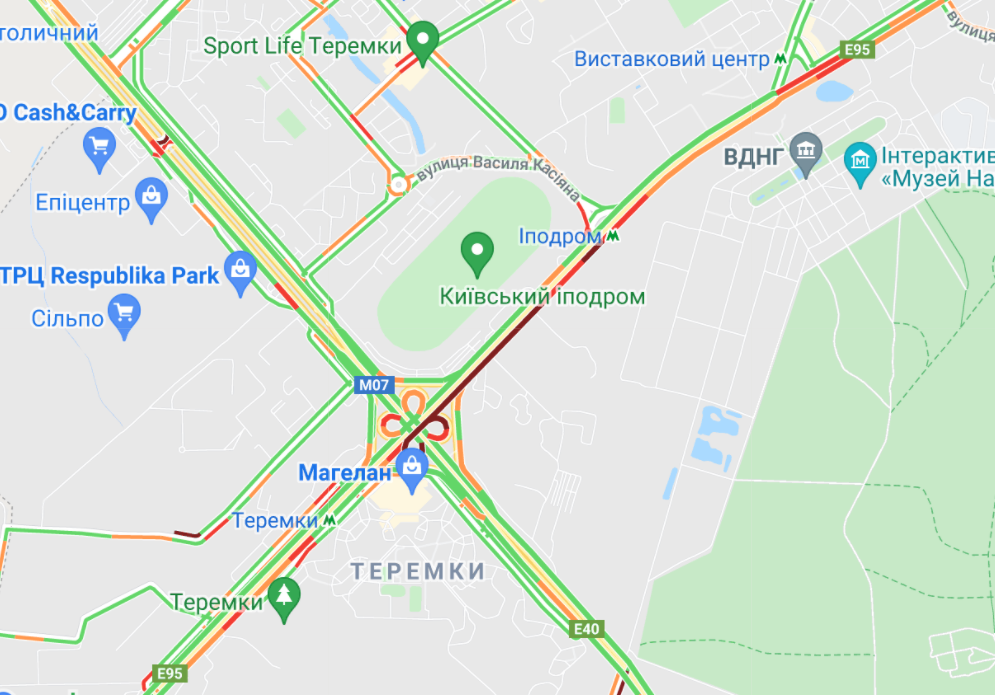 Утром по проспекту Академика Глушкова, 10, поперек дороги стал троллейбус. По словам киевлян, перекрыто движение на выезде из столицы.