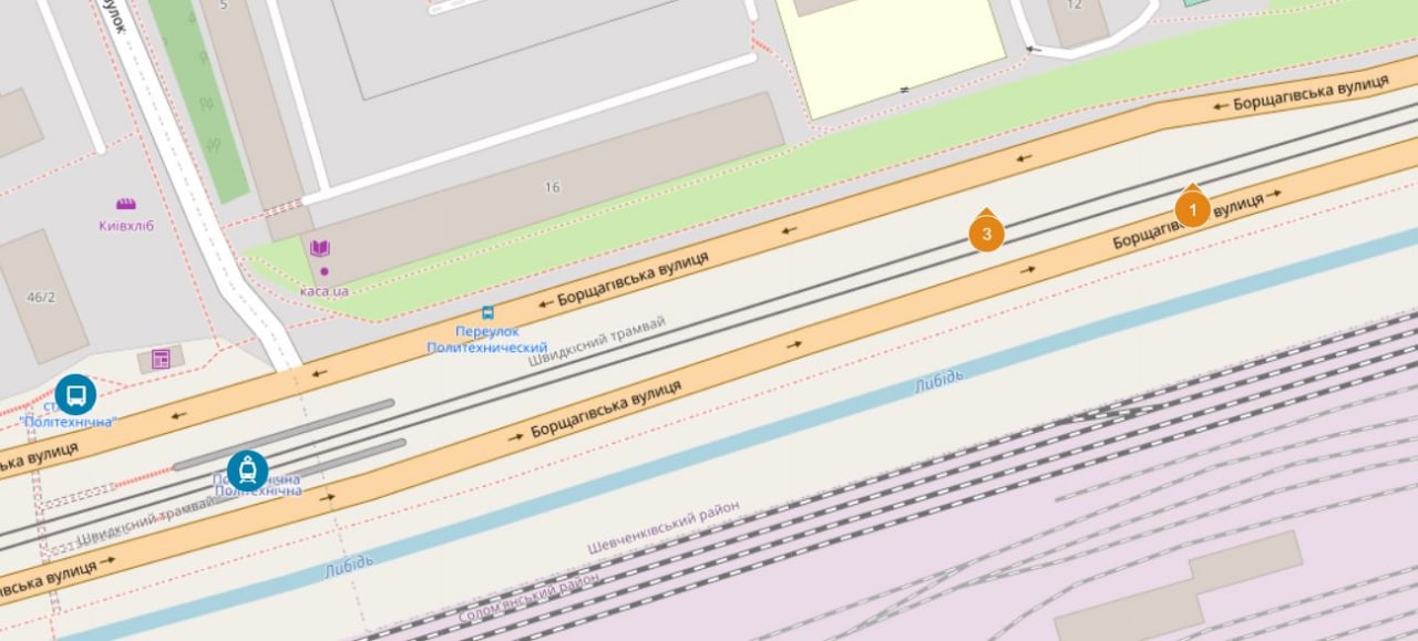 Задерживается движение трамваев №1, 3 по ул. Борщаговская. На место направлены ответственные службы города.