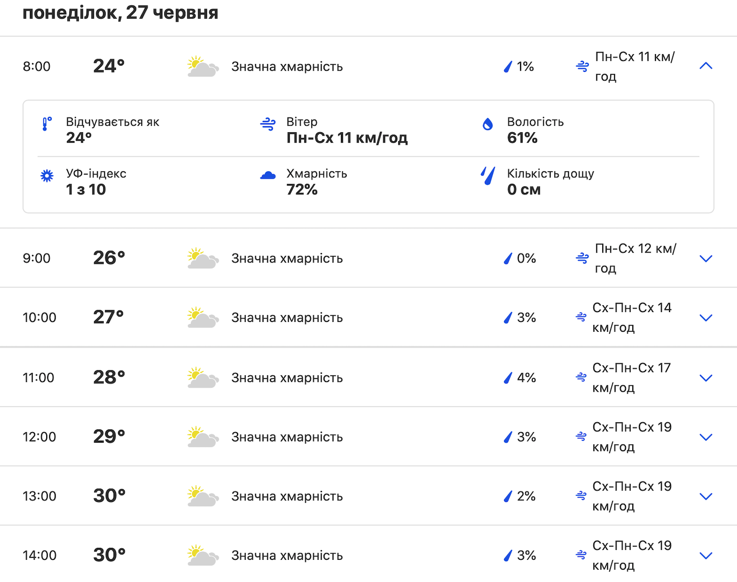 Сегодня, 27 июня, в Киеве будет наблюдаться жаркая и безветренная погода. В то же время солнце будет часто прятаться за облаками, что немного облегчит жизнь жителям столицы. Несмотря на высокую облачность, дожди не прогнозируются.