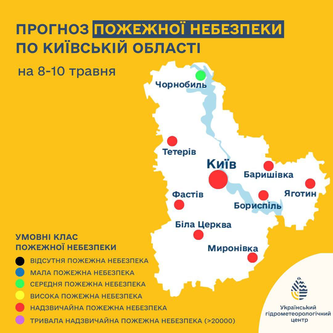 В Киеве и области ожидается повышенная пожароопасность. Осторожными следует быть 8, 9 и 10 мая.