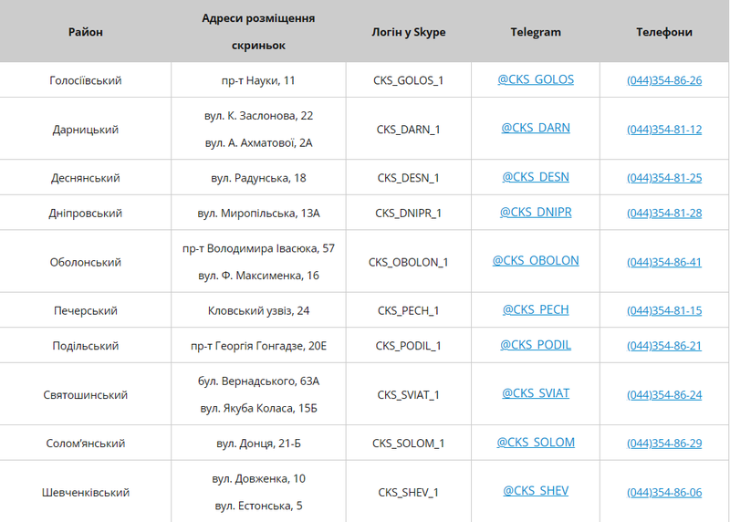 Узнать логины в скайпе или название в телеграмме "Центра коммунального сервиса" разных районов столицы можно ниже в таблице.