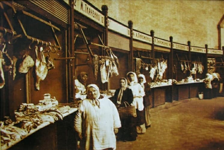 "Интересные фото. В то время как видите, продавали много хлеба, причем нарезали по желанию из крупных хлебов нужные куски. Этот хлеб был очень качественный и мог храниться долгое время. Кроме того, в семьях было много детей, и таких хлеб хорошо покупали. Продавали копчености, сало, буженина, жареных уток/гусей, свежие овощи. Интересный факт, что работники в то время неплохо зарабатывали, и их жены могли позволить себе быть домохозяйками", - подписали фотографии в сети.