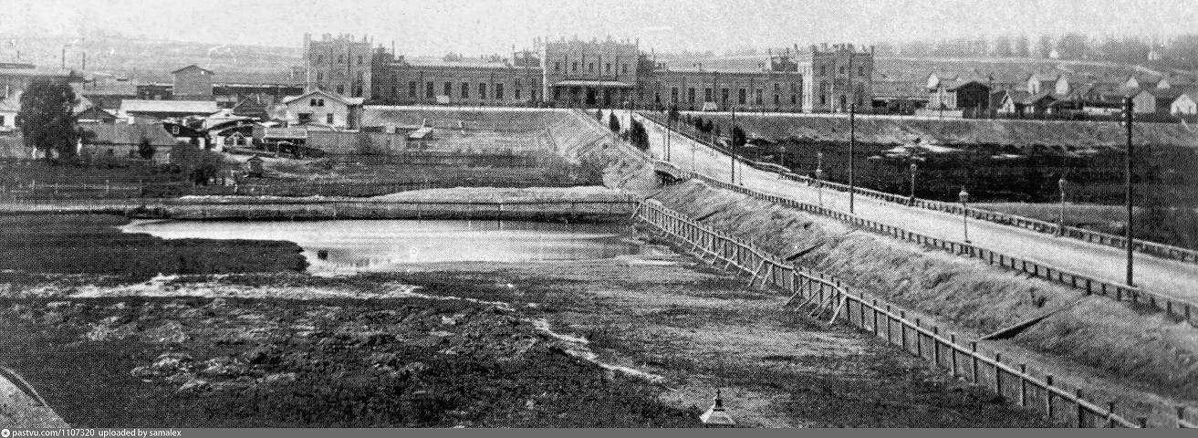 В сети распространяют фотографию XIX века, на которой изображены старый вокзал и тогда еще полноводная река Лыбидь.