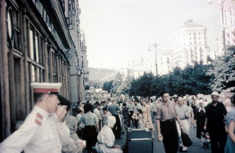 Городской шум столицы 1950-х годов, толпы пешеходов и обыденность Киева зафиксировал на камеру английский турист-путешественник.