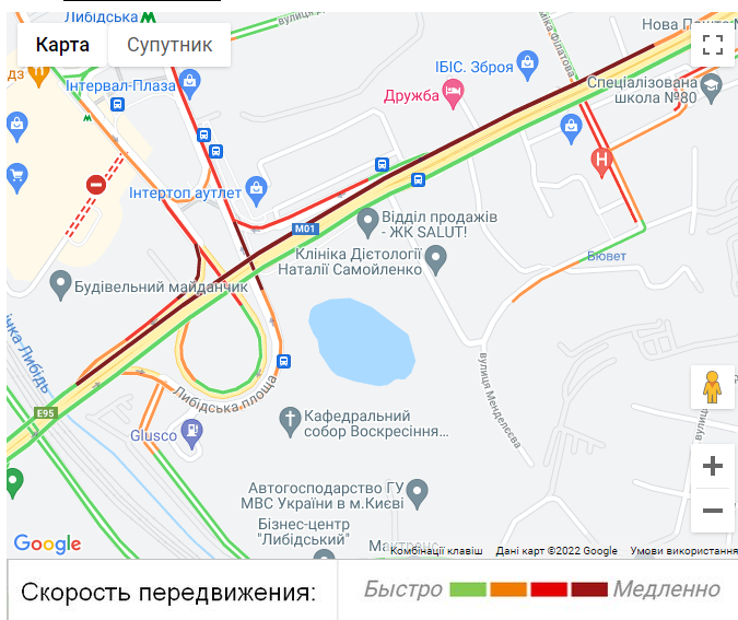 Немалая пробка на бульваре Дружбы народов в направлении Голосеевского района. Пробка возле метро "Голосеевская" на улице Васильковской, а также на Голосеевском проспекте в направлении "Дружбы народов".