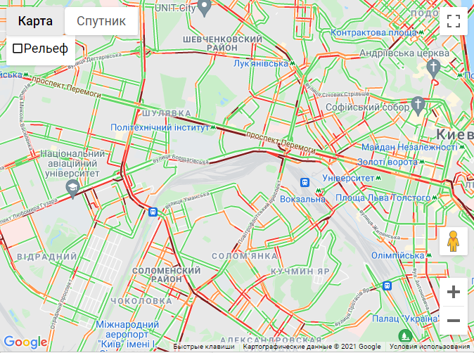 Трудно передвигаться по проспектам Степана Бандеры, Победы, Леся Курбаса и Валерия Лобановского. Трудно проехать по Чоколовскому бульвару и улице Вадима Гетьмана. В центре Киева осложнение движения присутствует на бульварах Тараса Шевченко и Леси Украинки. Пробки также на улицах Жилянской, Большой Васильковской и Владимирском спуске.