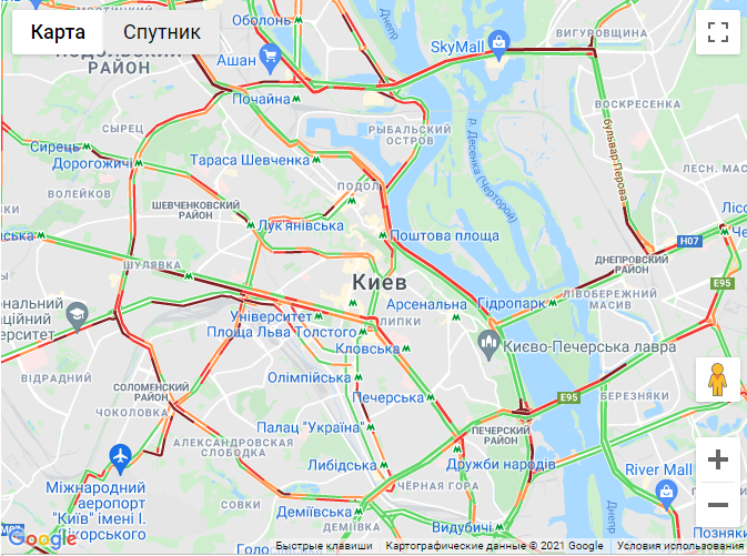 Добраться правого берега очень трудно по Северному мосту. Что касается левого берега, то пробки есть на проспектах Броварском, Освободителей и Николая Бажана. Затруднено движение по бульвару Перова, улицам Братиславской и Миропольской.